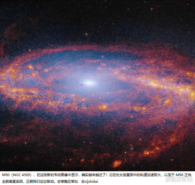 这可不是科幻,即是天地正在信得过发生的奇景,2026年3月24号,NASA公布了韦布千里镜拍到的梅西耶90(M90)最新红外图像。