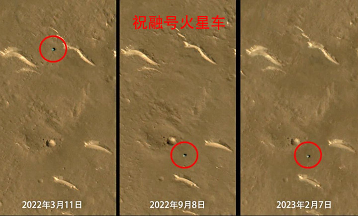 事实上,在上一次,也即是2024年10月,天问一号对回禄号进行拍摄时,就看到回禄号的车轮印基本上还是基本隐匿了。两次相片对比不错发现,回禄号仍然停留在原地,莫得再次苏醒过来。若是从更早的2022年9月算起,回禄号还是停留在原地三年半的期间。