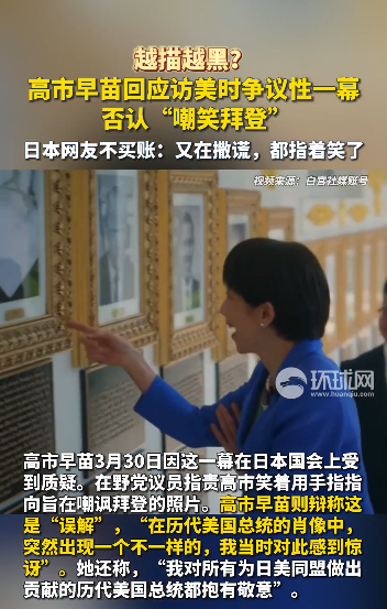 高市早苗3月30日因这一幕在日本国会上受到质疑。握政党议员质问高市笑着用手指指向旨在嘲讽拜登的相片。高市早苗则辩称这是“误会”,“在历代好意思国总统的肖像中,俄顷出现一个不通常的,我那时对此感到惊诧”。她还称,“我对总共为日好意思同盟作念出孝敬的历代好意思国总统齐抱有敬意”。