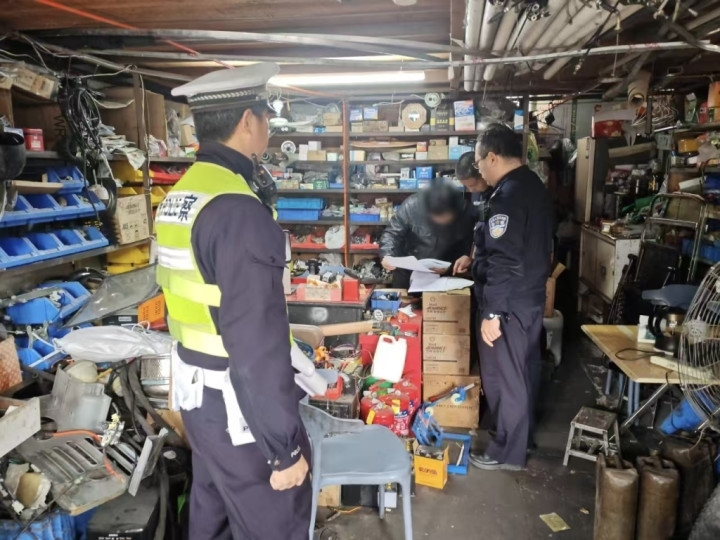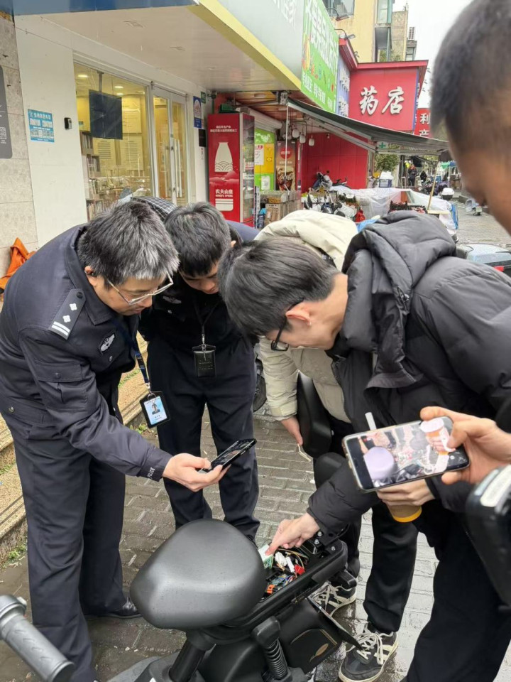 民警排查发现静安某电动自行车专营店涉嫌罪犯提供破解限速就业。上海市公安局供图