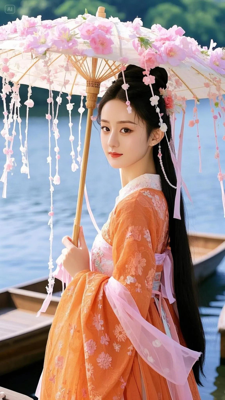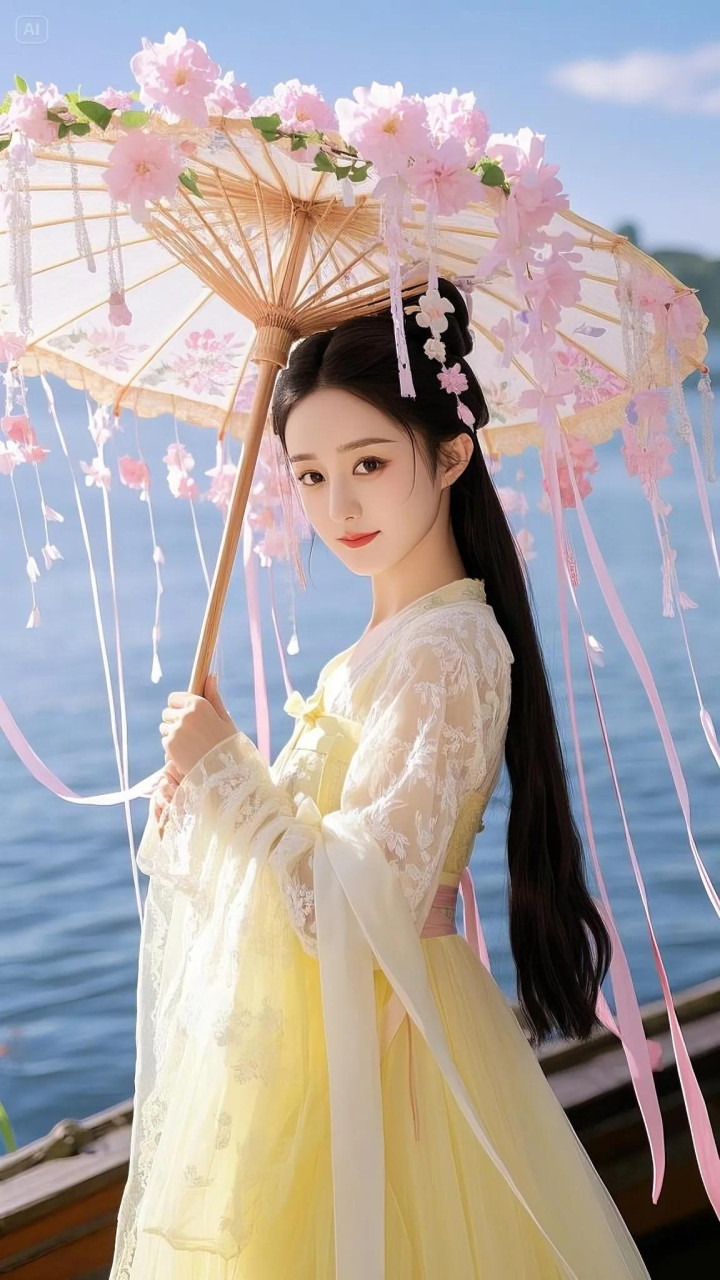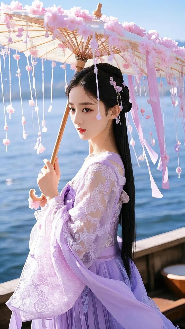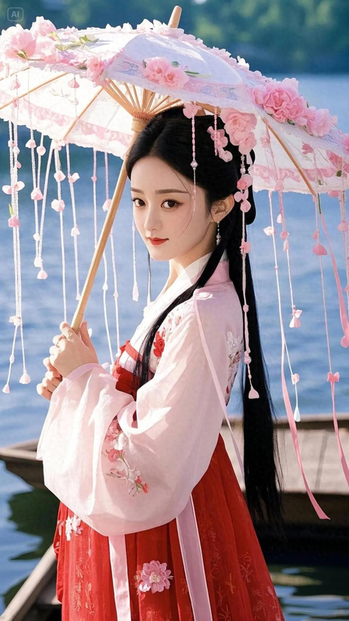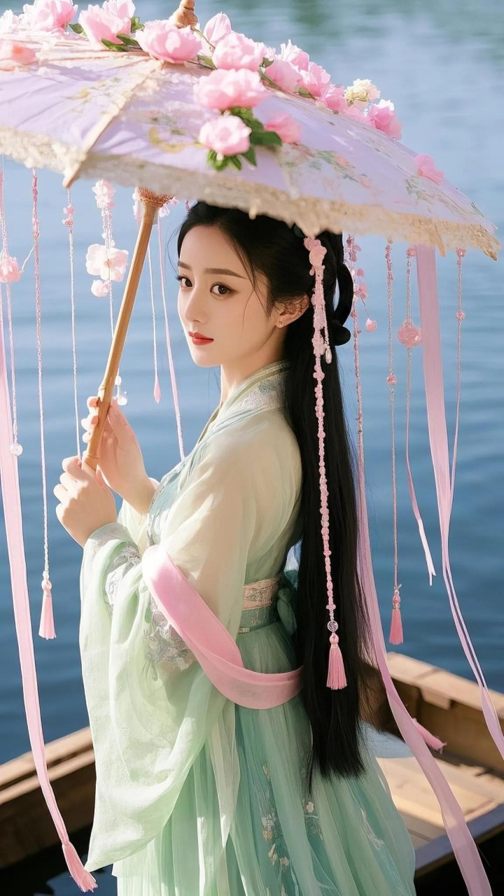 她撑着一把缀满粉花的流苏伞,长发挽起,发间点缀吐花饰,UED体育中国官方网站入口站在水光潋滟的水边,眉眼关爱,BET365下注氛围感平直拉满。伞上垂落的流苏随风轻晃,与死后的青山绿水逸态横生,每一个细节齐透着闲雅与诗意。