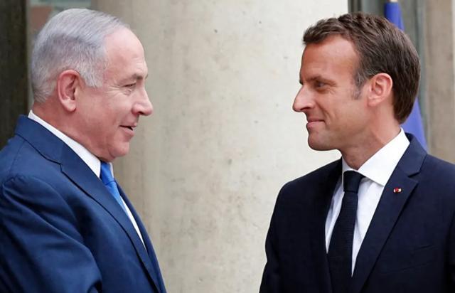 (马克龙和以色列总理内塔尼亚胡)