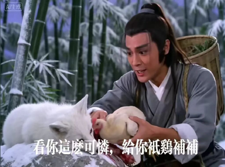 这个刷屏全网的梗,中枢原型网友制作发布AI邵氏武侠风短片《雪山救狐狸》,剧情简便到离谱: