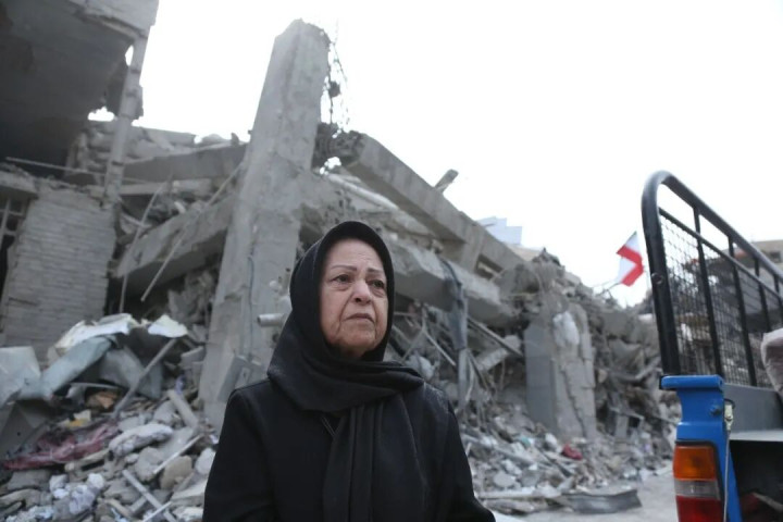 3月12日,在伊朗德黑兰,市民站在建筑废地前。新华社记者 沙达提 摄